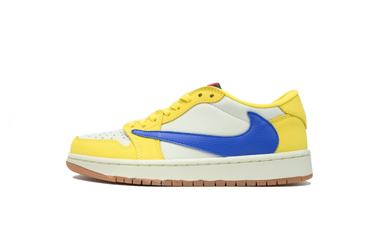 Step up your sneaker game with the Travis Scott x Air Jordan 1 Low "Canary". Featuring a bold yellow colorway, premium materials, and signature reverse Swoosh, these kicks offer unmatched style and comfort. Don't miss out on this iconic collaboration!